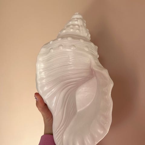 Ubrukt og unik håndlaget boho fjær/skjell dekorasjon.