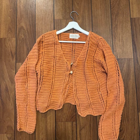 Reserved cardigan for dame i størrelse S. Farge er oransje med kabelstrikket design. Laget av 72% akryl og 28% polyester. Egnet for hverdagsbruk og gir en komfortabel passform.