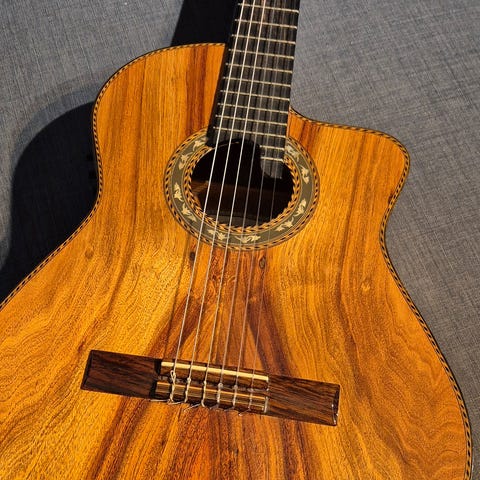 Camps M-2000 Selges Nydelig gitar med Fishman flex blend mic system. Topp i AAA sitka gran, bunn og sider rosewood, ibenholt gripebrett. Alt ved denne er topp kvalitet og den duger like bra til moderne musikk som til klassisk. Bygget i 2020. Koster i dag 35000.- Den fremstår som ny. Kun brukt hjemme og er godt ivaretatt. Kan også være med på et bytte i en Godin Multiac.
