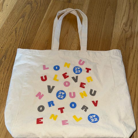 Ny beige Ripndip tote bag med iridescent Lord Nermal katt motiv