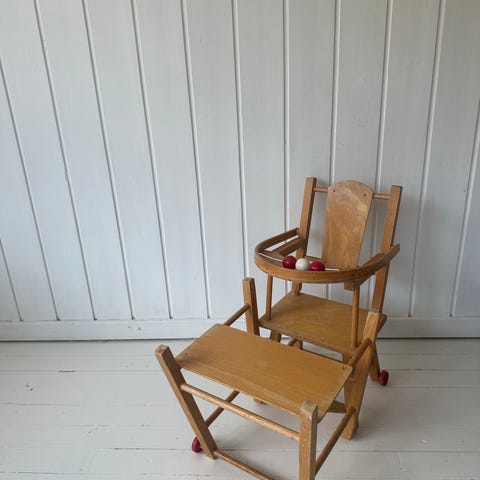 Selger spisestol til dukker. Noe avskrapet maling på kantane, se bildet