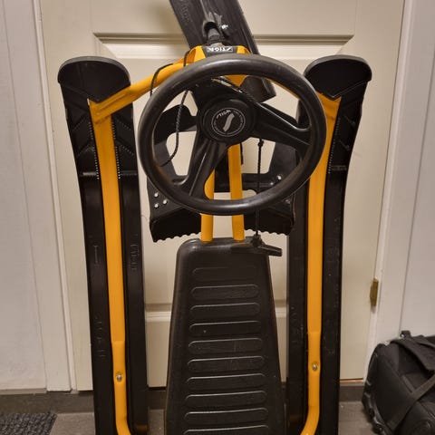 comforkjelke grønn, med evt rødt ståbrett. Fungerer til aking og som sparkstøtting