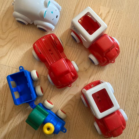 Kvalitetsleker fra brio, fischer price, skip hop og clementoni. Kjøpt inn nytt 2023 bortsett fra toget og larven som er mer godt brukt.