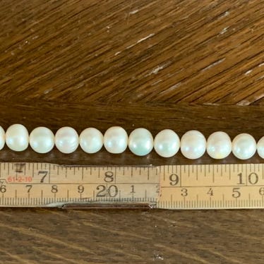 Vi har vært hos 5 gullsmeder i Norge, og fått bekreftet at perlene er ekte. Ingen av gullsmedene hadde perler som spesialfelt. Sjekk av ekthet er gjort visuelt, tanntest, gni/papirtest og vekt.