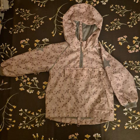 Pent brukt jakke. Genial i forhold til å ha på i bilstol når den lukkes bak. Er strøken og veldig fin jakke.