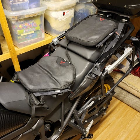 Selger 1 stk lite brukt setebag fra Givi mener den er 22 liter og kan utvides til 26 liter. Den har også innebygd regntrekk. Nypris 1990,-