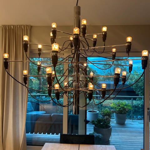 Selger denne fantastiske Flos taklampen i brun, designet av Marcel Wanders. Materialet er glass, gips og rustfritt stål i fargen brun.