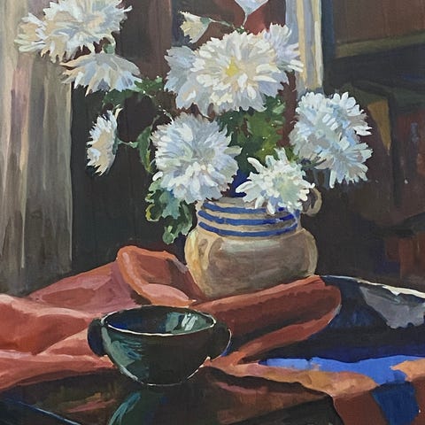 Stilleben malt av meg. Olje på lerret. Størrelse: 30 x 30 cm.