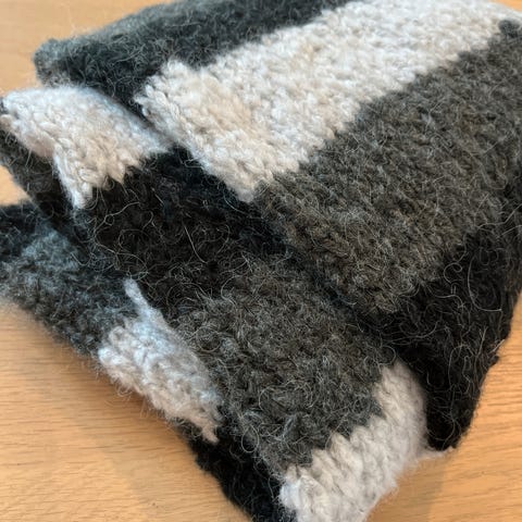 Tubeskjerfet er strikket i perlestrikk i mykt og lett 100% ullgarn fra Drops. Meleringene i garnet gjør at skjerfet passer til ulike antrekk. Passer både til menn og damer.