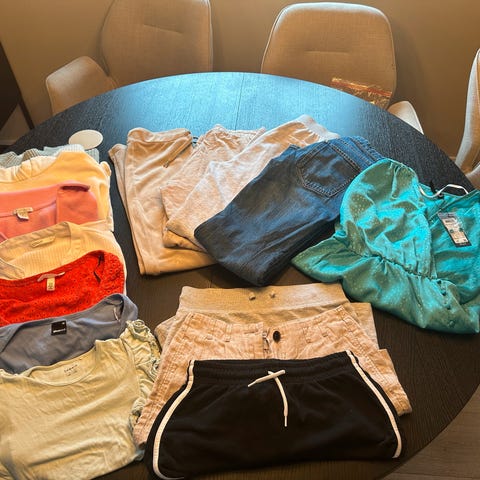 Bluser S/M, ene er ny og knyting nederst med pynt i hals. kjole og topp XL.