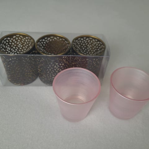 Telysestake/ telysholder for 3 telys. Metallfot og blått glass.
