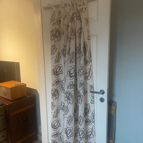 2 sett Lotte cafesett fra Herregård Design. Jeg selger her 2 sett. Hvert sett består av 2 gardinhøyder og 1 kappe. Gardinhøyde måler 100cmx70cm. Kappe måler 220cmx35cm. Lin og Viskose. Kan sendes mot at kjøper betaler frakt.