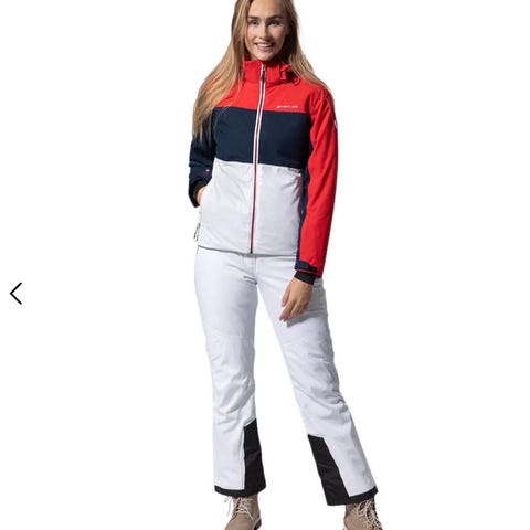 Vertical foret skijakke gråhvit m hette og div lommer detaljer og snelås str S romslig