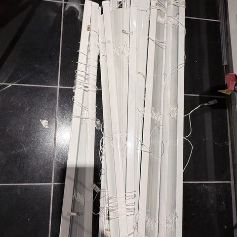 To persienner, en uåpnet pakke, og en er åpnet. Den som er tatt ut av pakken har ikke med skruer etc. Det har den som er i pakken. Strl er b 60 cm x h 160 cm
