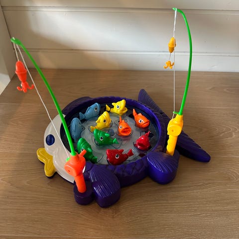 Mangler en fiskestang, men funker ellers som den skal. Snurrer rundt og spiller musikk