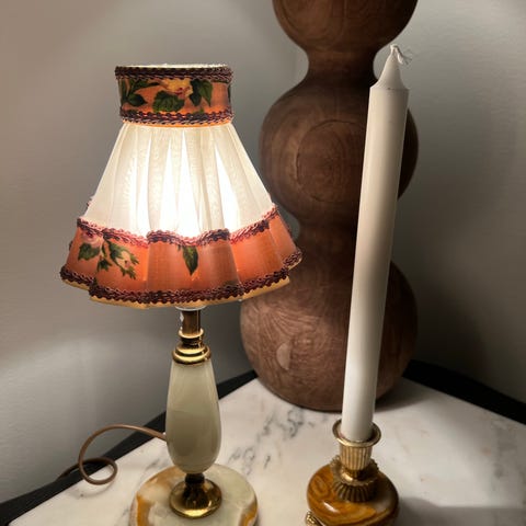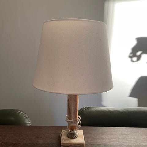 Meget pen lampe i onyx. Et hull i lampeskjermen.