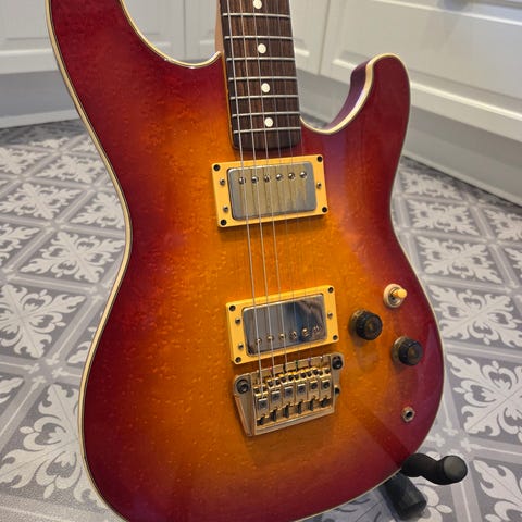 Selger min Ibanez Roadstar II Series RS 100 Brown Sandburst med kasse og skulderstropp. 1983 modell. Alle deler er originale, og full service utført av Frank Hovland i Bergen i oktober 2024. Gitaren fremstår som helt ny.