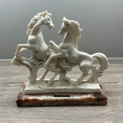 Flott steilende hest i frostet glass med sokkel i ruglete klart glass.