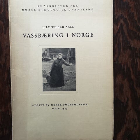 Sjelden bok om vannbæring i Norge. Den er utgitt av Norsk Folkemuseum i 1953, under Småskrifter fra Norsk Etnologisk Gransking.