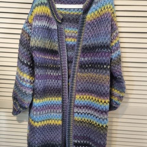 Tykt strikket lang cardigan i ull. Deilig stoff som ikke klør. Fra merket Levete.