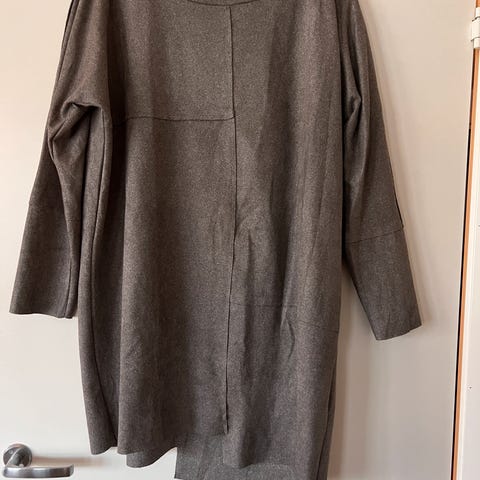 Original asymmetrisk lang genser, ull blanding, fin koksgrå farge, fra Italia.