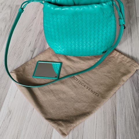 Vesken kan brukes som skulderveske eller crossbody pga en forlenger lenke som medfølger. Det mykeste lammeskinn, og lenken er nærmest et smykke. Fikk den i gave, kjøpt hos Loewe i København, kvittering og dustbag medfølger.
