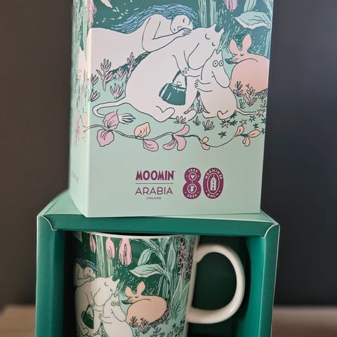 Ny kopp, kun tatt ut av esken for bilde.