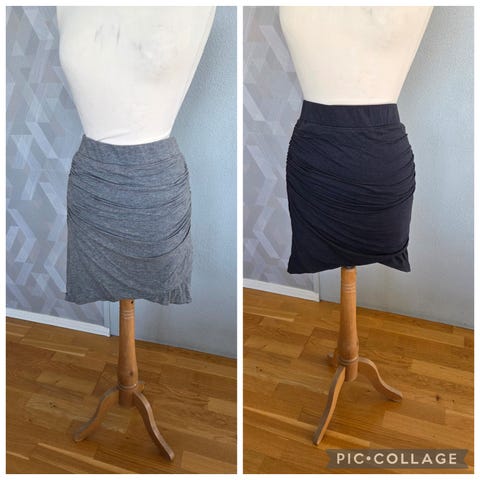 Skjørt i A-form og med to lommer. Varm grå farge. Polyester/viskosa/spandex. Glidelås bak.