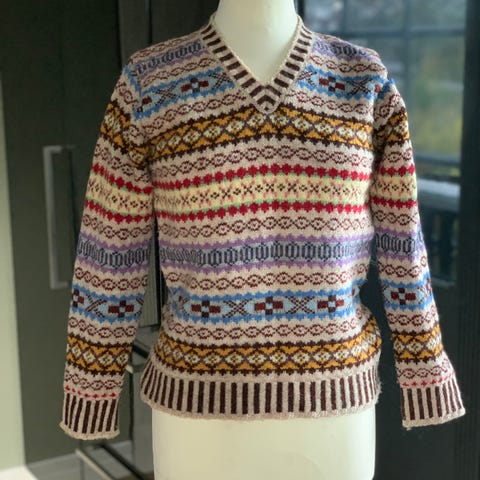 Vintage mønstret genser med v-hals