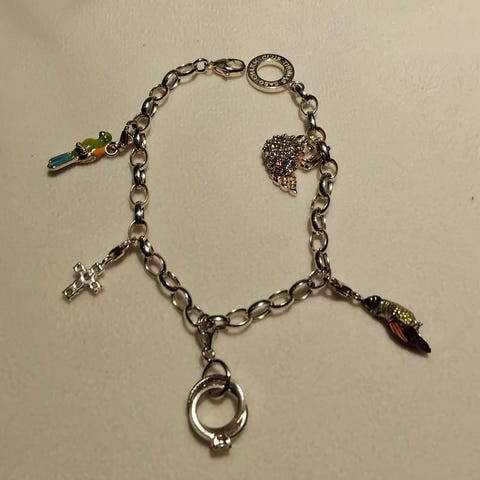 Pent brukt Thomas Sabo armbånd i sølv selges med noen få anheng. Tilsammen kjøpt for ca 2000kr