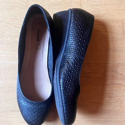 Flotte sko i marine og hvit. Ekte litt blankt skinn. God lest. Perforert på oversiden. God såle. Skoene er brukt bare noen få ganger. Nypris ca 1200