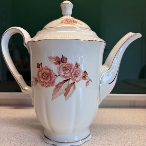 Flott gammel stavhank kanne fra Porsgrunn porselen. Slutten av 1800 eller begynnelsen av 1900 tallet. Et lite nagg på kanna samt at lokket er limt. Ellers hel og flott.