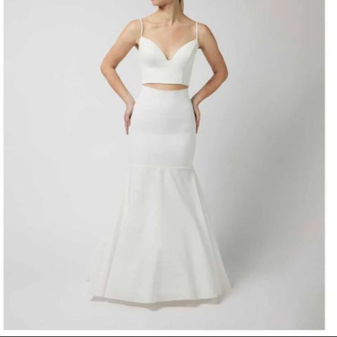 Denne nydelige underskjørt kommer uten strips, noe som gjør den perfekt for bruk under brudekjoler som er godt fôret.