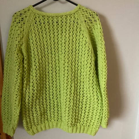 Håndstrikket genser i 2 tråd ( Drops Kid Silk og Sandnes Tynn Line) med hullmønster. Kjempefin og veldig behagelig å ha på😊 Str. L. Garn koster 800kr