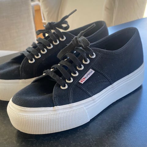 Disse var supre å gå i, og når de tittet frem under kjolen så de ut som pensko siden de er i sateng rundt hele.