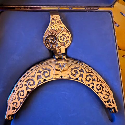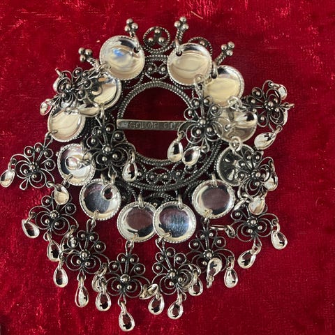 Bunads sølje med stemple 850s. Sølja er 7 cm høy, 5cm i bredde. Ny pusset.