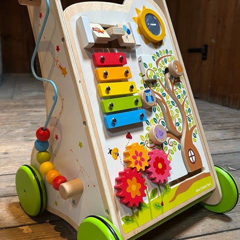 Aktivitetsvogn med byggeklosser i tre fra Le Toy Van. Kjøpt på sprell for 3 år siden. Brukt til ett barn.