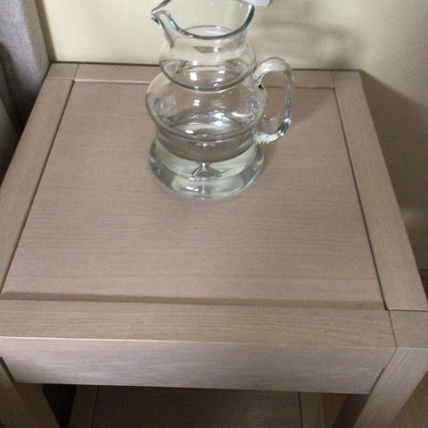 Den er 20 cm høy og ca 10 cm i diameter. Tykk og massiv. Veldig tung krystall. Rommer 7 dl. Selges for 200kr.