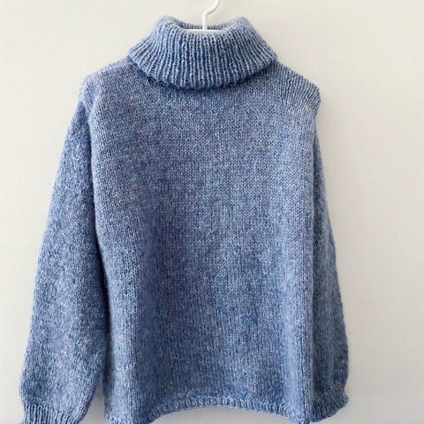 Den perfekte håndstrikkede grå genser? Du har kommer riktig sted. Har også str M! Min mor og jeg selger unna det vi ikke har plass til i skapet. Helt ubrukt, hjemmestrikket genser i alpakka. Superchunky, lett og god. Verken klør eller loer. Du kan se mer på min Instagram ByHuus. Som sett på influenser Anja Johansen og tiktoker Liv Einemo. Kan prøves og sees på Fornebu S 🤍