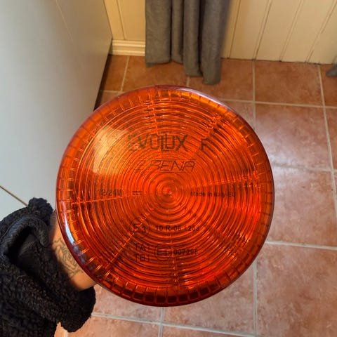 Selger pent brukt rotorlampe ,med magnetfeste. Strøm fra sigaretttenner. Selges som den er. Lampa er testet og den virker fint Kostet ny kr 480. Glasset er påsatt tape nederst, vet ikke av vilken grunn.
