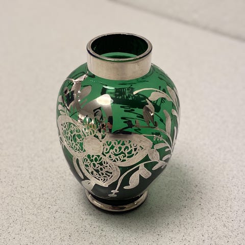 Gammel flott glassvase m/gulldekor selges. Noe bruksmerker/slitasje kan forekomme. Selges som den er. Se bilder.
