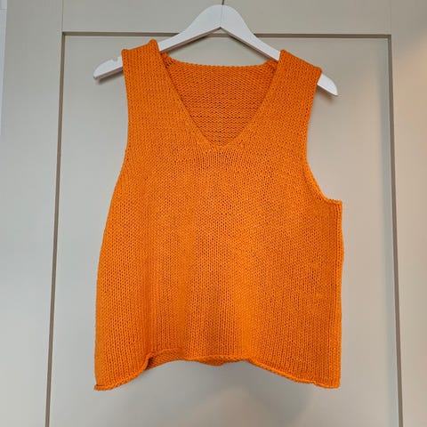 Farge er misvisende. Pen mørk rosa . Brukt få ganger. Brukt pyntenål i halsen. . Har 2 andre farger i andre annonser. Mener jeg har strikket i garnet Sterk. Kjøper betaler porto.