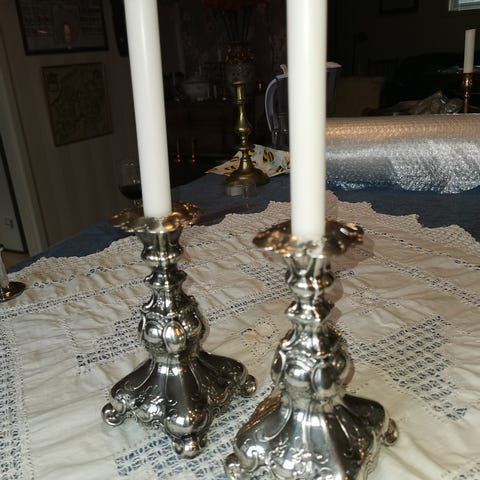To gamle pene Lysestaker i NYSØLV 60 Gr. til festbordet.