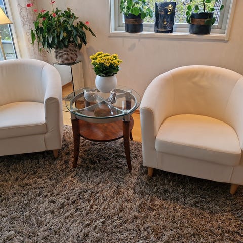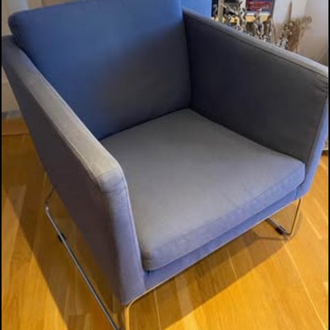 Konrad stol ikke brukt bare stått til pynt. Brun velur god og sitte I. Bredde 62 cm