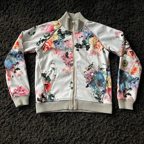 Grå dag..? Ikke med denne jakka! Selger en nydelig jakke av god kvalitet fra Molo, med mønster til å bli glad av! Jakken har kun blitt brukt noen få ganger. Plagget kommer fra et røyke- og dyrefritt hjem. Se bilder for ytterligere informasjon.