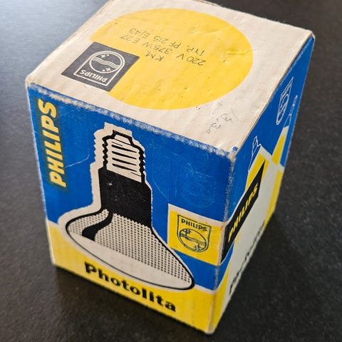 2 stk PHOTOLITA 500W TYP.PF 218 E/43. Reflektorpære. Kr 175 pr stk.