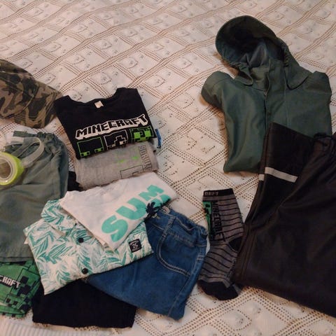 Selger et fint sett av lue, hals og votter i ull. Fint å gi i gave. Votter 200 kr. Lue 150 kr. Hals 200 kr. 500 for alt. Selger også et sett med genser og bukse brukt en gang. 200 kr pr stk.