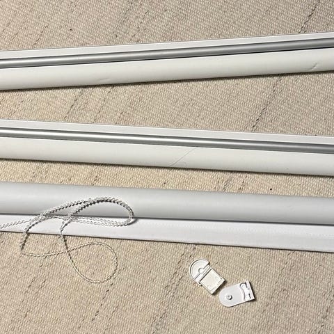 Diverse brukte, intakte og fine persienner i aluminium med snor og stang selges samlet