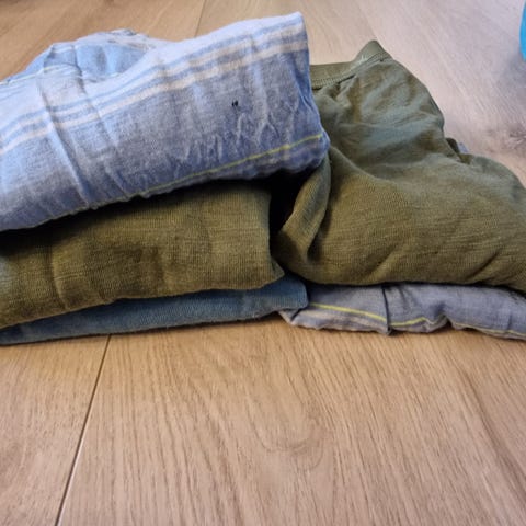 Ull tøy selges samlet. Noen mini hull på den blå ull buksen. Ellers topp. Supre ull klær. Mye ull for pengene. Passer ca Str 122/128.