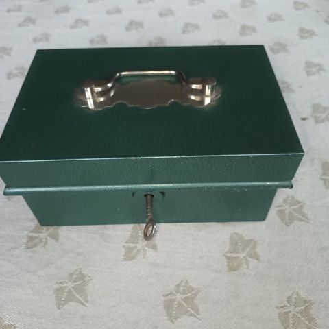 Emaljert Tysk Pengeskrin i grønn metallic Emaljelakk.